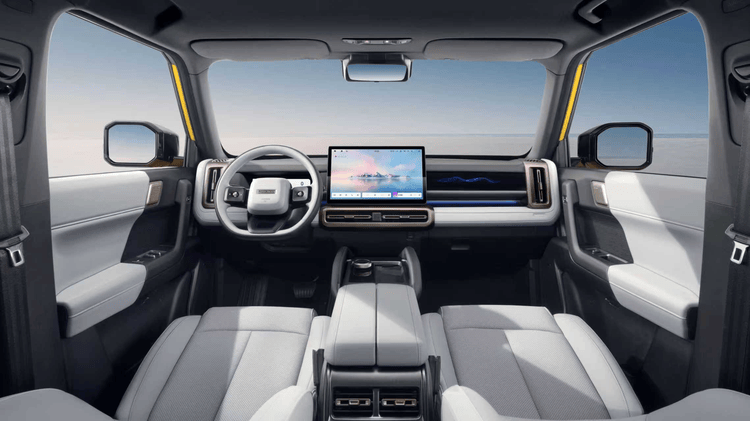 新车提供8种基础驾驶模式 x种自定义扩展 5种极限场景功能,包括圆规掉头、坦克掉头、低速蠕行、柔性下坡和越野单踏板模式,涉水深度更高达625mm,无论是城市通勤还是野外探索,皆可从容易驾驭。