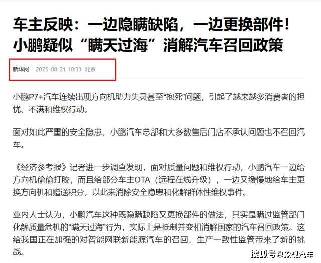 在官媒新华社两次发文痛批施压之后,小鹏汽车终于从一开始的遮遮掩掩、瞒天过海,到如今大规模召回4.7万辆问题车。