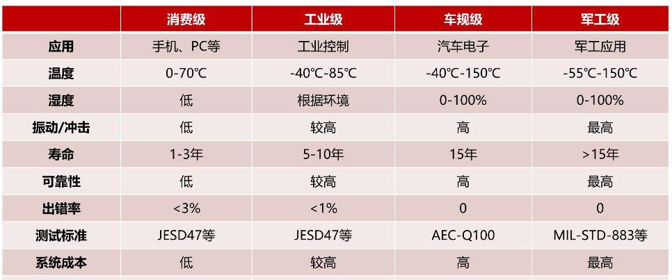 缺陷率的要求更是天壤之别。消费级芯片允许缺陷率高达500ppm(百万分之五百),而车规级芯片要求低于1ppm,相差五百倍之多。